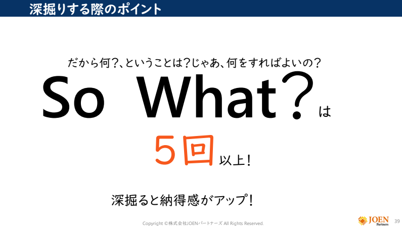 受講者は「So What?」を繰り返しながら課題を深掘りする演習に取り組みました。