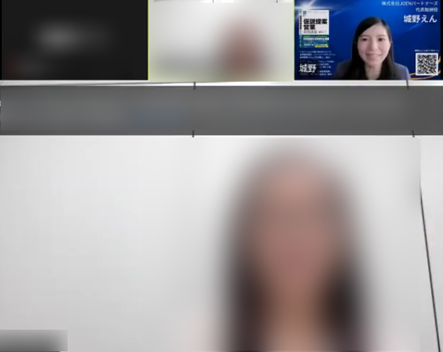 講師はJOENパートナーズ代表の城野えんが努めます。大手IT企業で新製品受注件数No.1を達成した実績を持ち、新規顧客開拓やパートナーアライアンスの豊富な経験に基づいた解説とフィードバックを行いました。