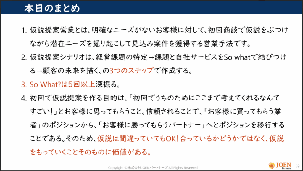 今後もJOENパートナーズは、仮説提案営業®の定着を支援し、営業組織全体の成長と成果創出に貢献してまいります。